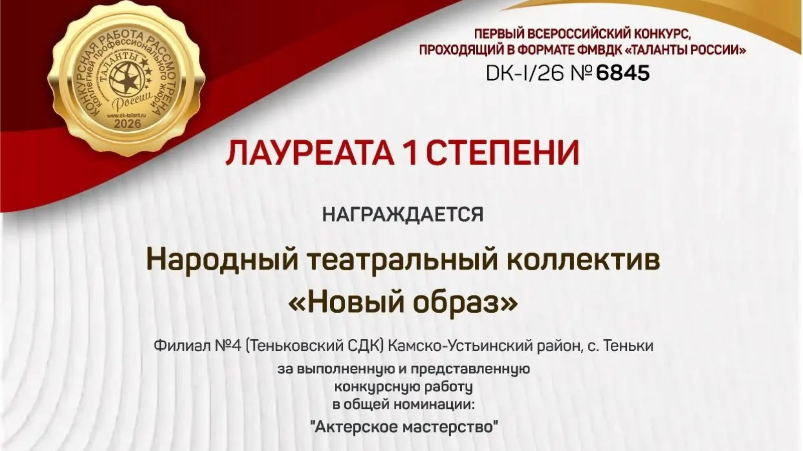 Тәмте авыл мәдәният йортының "яңа образ" халык театр коллективы Халыкара һәм Бөтенроссия дистанцион конкурслар фестивалендә 1 нче дәрәҗә лауреат исемен яулады.