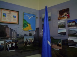Посетители с интересом останавливаются у витрины, посвященной городу Людвигслуст , с которым наш район сотрудничает с 1994 года.